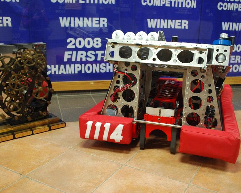 I see some tanks (Unplumbed by the looks of it). If you look at the 2008 glass panel, you can see what looks like a curvature to their shooter, but then the wheels are at the top corner. ?.? Never before have I wanted so many details. As far as the floor pick up goes, it would make sense if it were in the back right (looking at it head on), but it doesn't quite look like it's a break in the bumpers, but more so that the the "split" we see is just the fact they only have two bumpers.