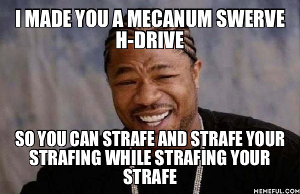 I like to use mecanum wheels on swerve drive so that we can strafe while we're strafing.