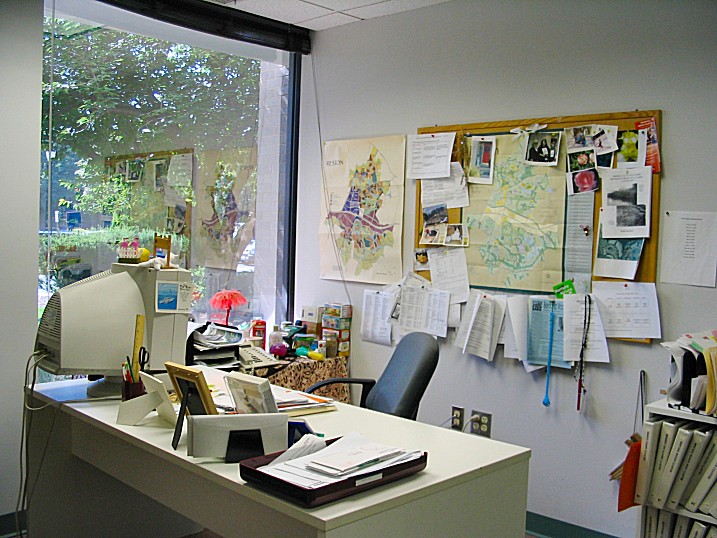 On the wall not shown in this picture are team photos, photos of odd things I've seen during inspections, some awards, my sky-diving certificate, and my dry erase wall calendar. Heidi |