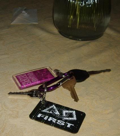 ![]() What you see: Car Key, House Key (gold), Bedroom Key (silver), Clip, I see dumb people keychain, FIRST Keychain : Aquired - my mentor threw it at me =] I kept it. (and in the background the vase of the roses Adam got me for the 6 month mark) |