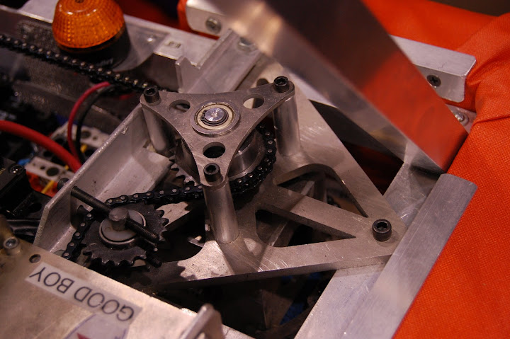 that shows what inside of our magically spinning rollers. http://lh6.google.com/patfair/R8t_om...jpg?imgmax=720 thats the part that holds the module and part of the andymark drive gearbox and tensioner. i still have yet to get some good pics myself of the module up close, but these are one's Pat Fairbank (1114) took and put up. |