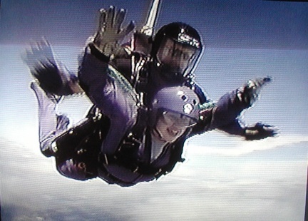 For our birthdays this year my closest, "bestest" friend and I decided to go skydiving (Tandem jump, which is recommended for first time jumps). The way we saw it was, we're Geminis, which is an air sign, we were meant to fly! Because of bad weather we actually went two weeks after our birthday weekend, but we did do it. We jumped from the plane at 14,000 feet and did a free-fall for 55 seconds (which at 120 miles means we fell for close to 2 miles). The only word I can think of to describe it is amazing, but it was beyond that. Here's a not so good picture of me in