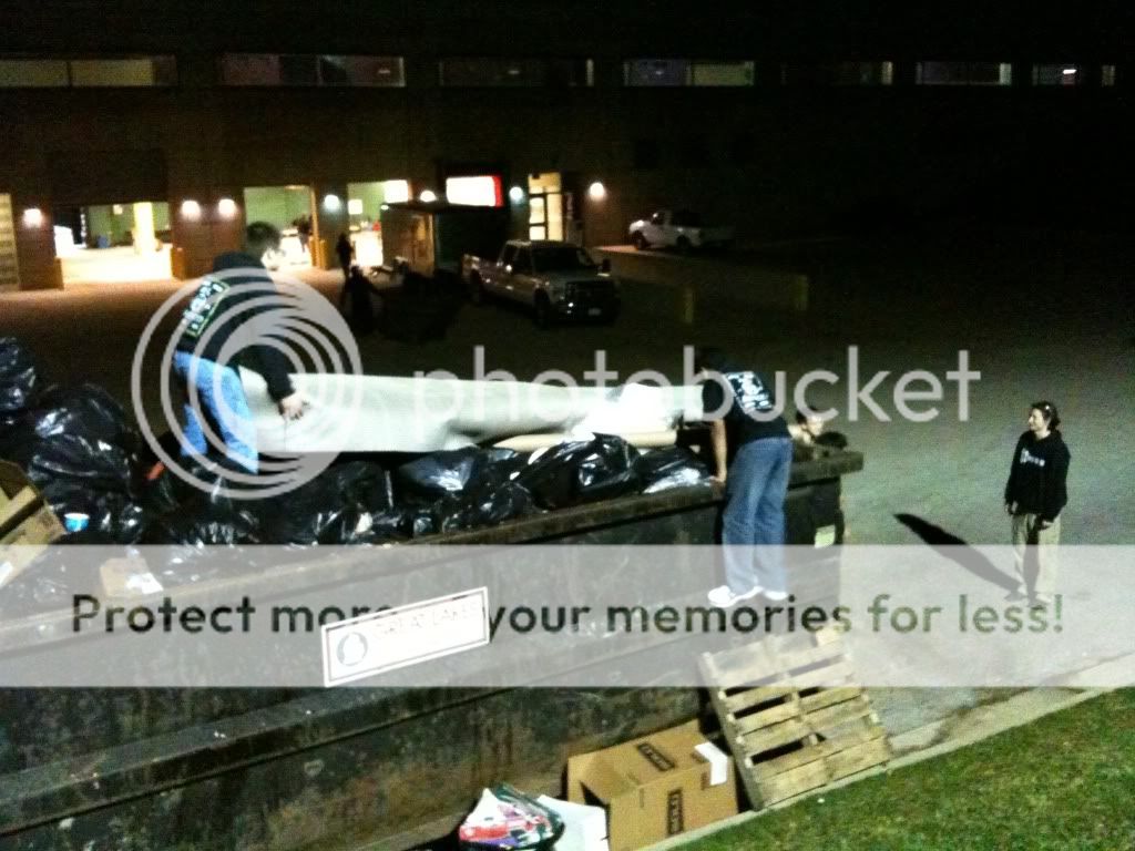 Four hours after squeaking out a win at the MI Championships and proving yet again they are a serious contender for Einstein, here's 469 team members showing true dedication to FIRST during the field teardown, literally climbing into an overloaded dumpster to properly dispose of the practice field carpet.