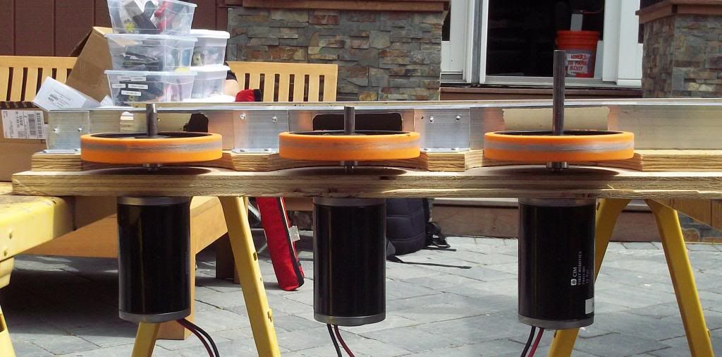 Here's a video: http://www.youtube.com/watch?v=e7zD_Qd1mG0 we've made some modifications since taking this video, and have dealt with some of the Frisbee jumping and slipping on the fence. We've replaced one of the big CIMs with a smaller one, and will probably take off the third wheel... As far as the wheels slipping on the shaft itself, we're using shaft collars with locking screws and the wheels aren't going anywhere. as far as local teams, MVRT has been helping us, but they aren't close enough to be of much help at this point (they're the closest at about a 1.5 hour drive away) Thanks! |