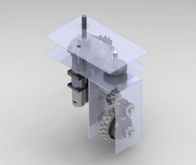 Please let me know if you have any questions/comments/concerns about the design, attached concepts, or anything else. I'd like to know what I should improve on this design, and (perhaps more importantly) if it will work. I do know that I need to add some bolts between the top and the bottom horizontal plates, add some more support horizontally between the two vertical supports for the wheels, make an actual mounting system (which will probably just be bolts through the bellypan of the chassis in this sort of setup), and then I need to swiss cheese everything. I also need to put in the shafts of proper lengths and add keys/retaining rings where necessary. However, I'm sure there are things that I'm forgetting; if you find anything, please let me know.