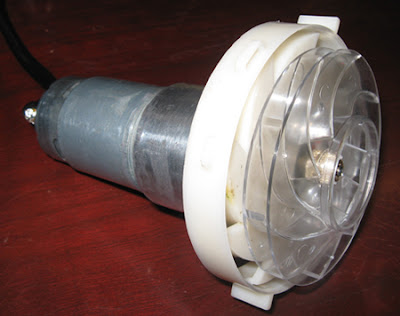 Here are two pictures of our turbine. It is a Dirt Devil hand held vacuum modified to fit a Fisher-Price motor with a 1:2 gear ratio. This assembly is attached to a 20" diameter dome.