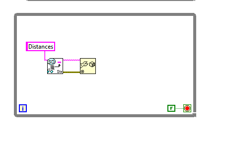 Okay I have the dashboard flattening Distance information to a string, and then sending it to SD Write String, which should put it into it's hierarchy or whatever. Now in the PeriodicTasks.vi I have placed a SD Read String and made it unflatten the string like this: