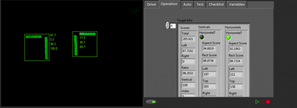 With that information and knowledge handy, I'm completely stumped on how to integrate it into the teleop or autonomous VIs and make the robot do things (such as move to 10 feet away from the wall, or turn 60 degrees to the left, etc.) based on score or distance away. If anyone considers themself a guru of vision, any help with pictured examples or a .pdf or something like that would be fantastic.