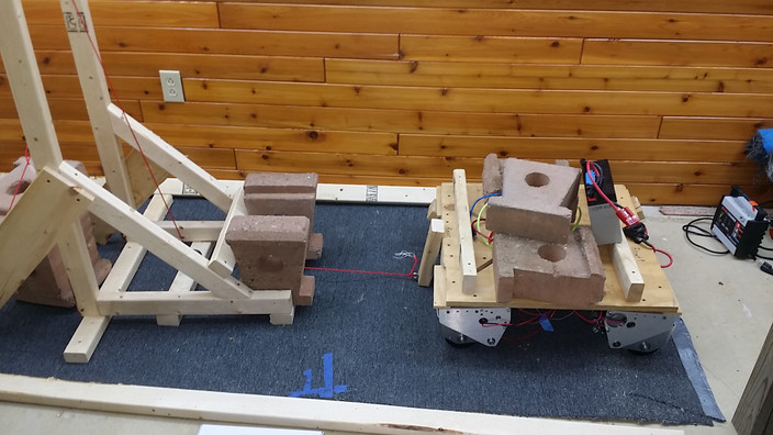 I forgot to account for the weight transfer due to the cord being 5.5" off the ground. When I did a free body diagram, I found that just over 2/3 of the weight is resting on the rear wheels in that configuration. ![]() I rigged up an extension to lower the cord to about 3/4" off the ground and re-ran the test. It still barely lifts the 3 pavers, but this time 3 out of 4 wheels spin (the left front wheel does not spin in any of the tests - I suspect I have a lot of internal friction losses in that one). ![]() I still need to re-write the code to ramp up the torque instead of going full-bore from the start of the test. |