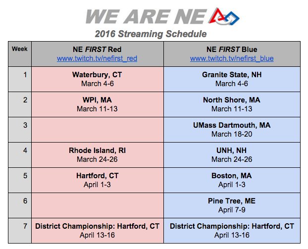 Until otherwise noted (PNW champs may change) all PNW events will be on either http://www.ustream.tv/channel/firstwa-blue or http://www.ustream.tv/channel/firstwa-red. It has not been said what stream will have what events yet.