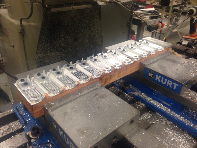 rubber. We modeled the parts in solidworks and then estimated space required. We ended up facing the die about 20 thou to get the compression just right. The V was a standard 90 degree cutter.