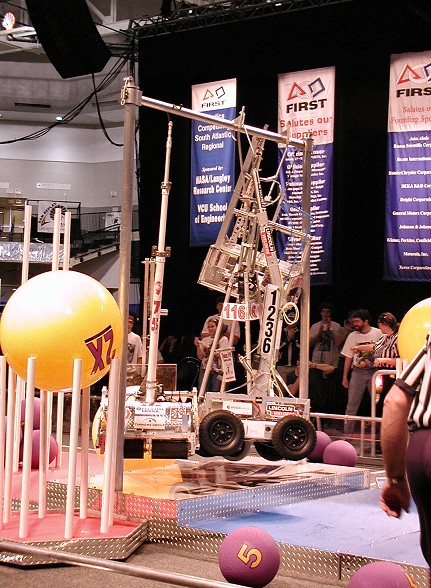 I just posted a photo from Richmond, in the Team 116 gallery on my web site, of the 4 robots hanging in our winning round of the quarter-finals. I also included a photo of our flight-crew's reaction. The link is in my tag line.