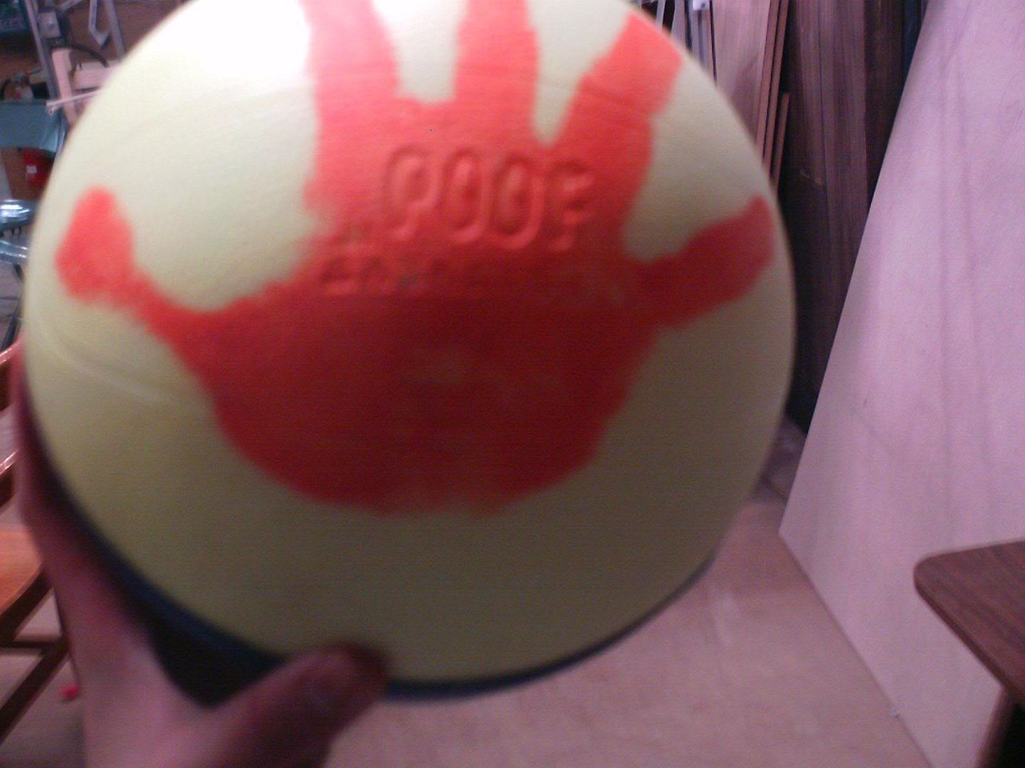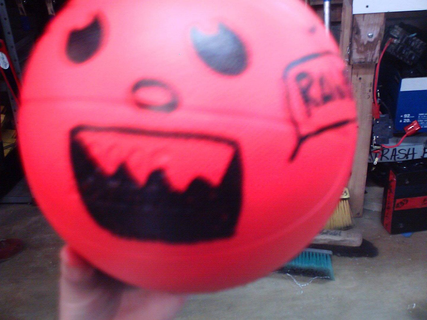 Yesterday while at Robot Ruckus, we realized that the other teams put their team number on theirs. So I grabbed the nearest sharpie, and wrote the team number on it, the continued to sign it. A fellow team mate then took it and signed it, by the end of the day our ball was covered with signatures. I think that counts as decoration.