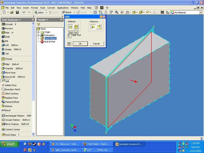 Ok... so there is a question about cutting already here, but mine is slightly different. In a part, if you have a work plane that is not parallel with any of the other planes how do you cut off (completly obliterate) the part of the object on one side of the plane. I cannot find a command to do this so I hope someone knows