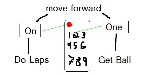 Notice the varying language between the rules: four commands versus four actions. A command is self-explanatory: for example, the robocoach can send a 1, 2, 3, or 4. However, the rules never explain what an action is. Is an action something physical or something in the program? Physical actions could include driving straight, turning left, or a series of actions (raise arm, hit ball, then lower arm). Programming actions could be adding a number to a register, or adding a number to a stack or queue. If you interpret the rules to mean that the robocoach can command four different programming actions, then those four programming actions can command more than four different physical actions. For example, you could create 16 physical actions by pressing two buttons in sequence, still using only four programming actions. Is this loophole valid, or do the rules imply that the four actions must be physical? |