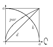 This is the example i found... Take a square with side a, a circle k, a parabola and the triangle with hypontnouse d. A complete rotation of these curves around the x-axis will produce a cylinder, a semi-sphere, a paraboloid and a cone that have volume ratios as 6:4:3:2. Dean explained this to me at the UTC regional in 99, and from what i remember him saying, he was so fascinated by the triange-circle-square trick that he wanted to design the logo after this. Any other ideas? Tom |