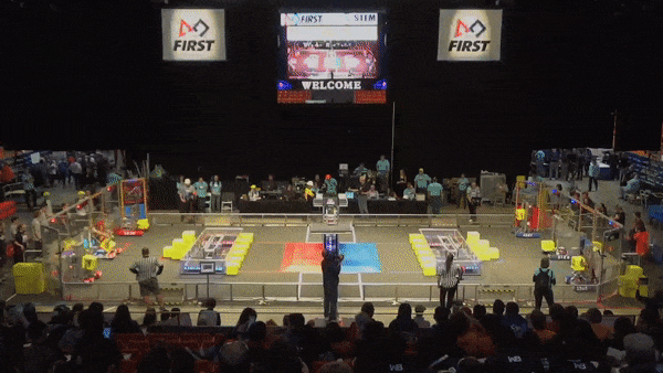 Simply put, these are the most synchronized auto shots you could ask for! From the timing of the turn of the robots, the time when they fire, the height that the cubes reach, and the way the scale stays perfectly still. Also, note the reaction of the ref in the lower left, priceless.