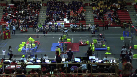 Here are the Average Joes, 3620, the hosts at St Joe, MI, having a bad moment in the final final. Stryke Force 2767 went on to win the event in this match. We scouted this event and the Joes made an amazing run to get to the finals and I suspect they’ll be in contention for a banner at West Michigan. Hope we will too!